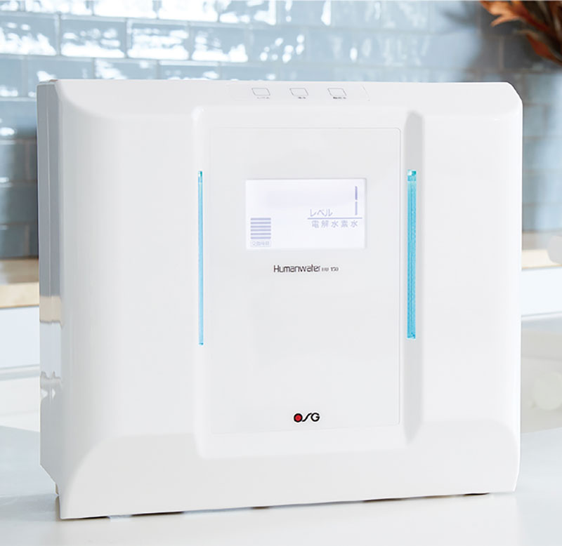 Clear Water メーカーズでは、医療機器認証を受けた電解水素水整水器「ヒューマンウォーター」や、空間になじむスマートなアンダーシンク型「アルカリッチ」をご提供しています。電気分解によって生まれる水素を含んだアルカリ性の水は、胃腸の働きを助け、お通じの改善などにも効果が期待されています。